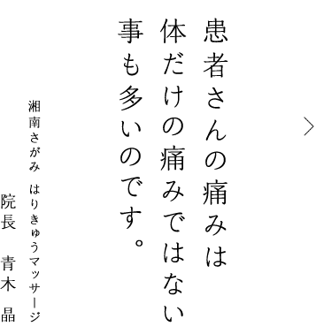 2009年の開業以来、丁寧な施術で多くのお客様のお悩みに寄り添ってまいりました。